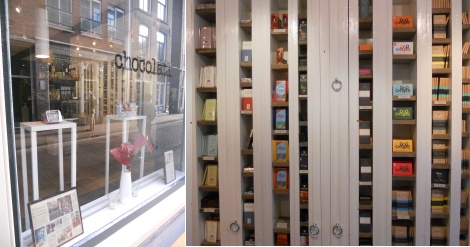 Au cœur du quartier branché du Jordaan à Amsterdam Chocolatl propose une sélection pointue de chocolats venant du monde entier. En lien direct avec les chocolatiers, le propriétaire a une histoire à raconter sur chaque référence. La riche gamme est présentée comme des livres dans des rayonnages, mettant en valeur le design soigné des packaging.