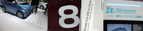 Alors voilà, la mobilité écologique bientôt accessible à tous ! Mais que choisir? A priori le design est secondaire au vu de la présentation des modèles sur le salon, qui mettent tous en avant des nombres magiques : encombrement, économie, autonomie, émissions co2, temps de chargement de batterie … il y a tant de choses à dire !