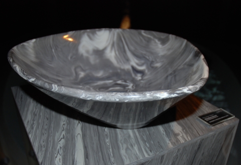 Après la fibre de banane, voici d’autres matériaux innovants découverts durant la design week à Milan. Le thaïlandais Cotto a présenté « Marmo Granito », un faux marbre, composite obtenu à partir de terre glaise. Decafé de Raul Lauri, grand lauréat de Design Satellite, propose un matériau composite à partir de marc de café compressé, idéal pour des lampes, bougeoirs et autres petits objets ! Seul inconvénient, il n’est pas étanche (pour l’instant). De son côté, Cristalplant insiste sur le fait que contrairement aux autres composites de type Corian, son matériau s’utilise sous forme liquide, à injecter dans des moules, ce qui permet de réaliser des pièces complexes et fluides.
