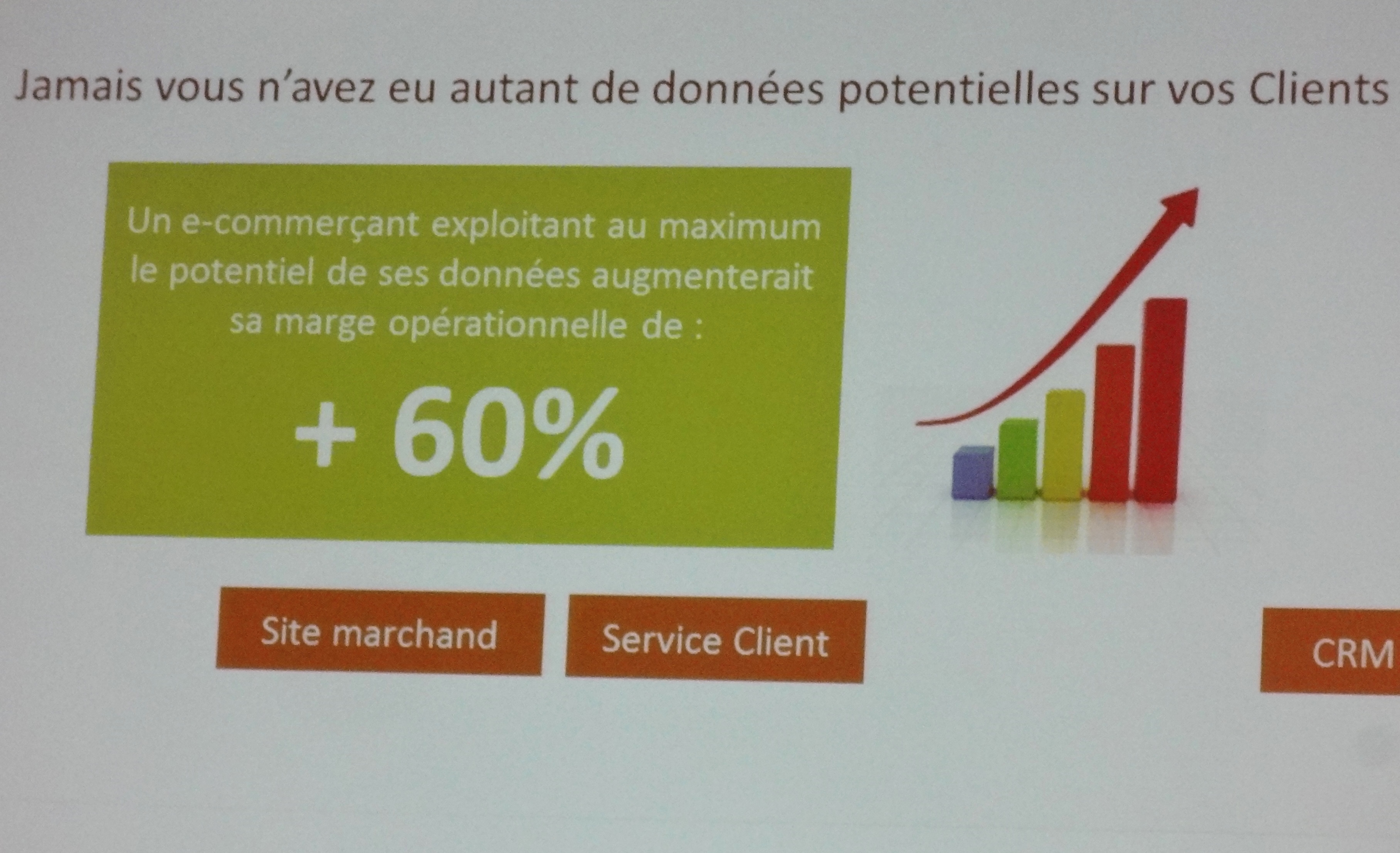 Le Big data est souvent associé à des grands comme Google ou Amazon, qui savent tirer partie des montagnes de données accumulées sur les réseaux. Un tour sur le salon e-commerce permet d’en savoir plus sur les usages en cours et à venir. Par exemple, il y a plusieurs niveaux d’utilisation comme l’explique de façon synthétique le schéma présenté par Christophe Cousin de Camp de Bases (Infographie_Benefices_clients_des_big_data_marketing). Un premier niveau concerne tout simplement l’exploitation d’une base nominative pour optimiser les ciblages et personnaliser la relation client. Le niveau suivant permet d’exploiter les données de navigation d’anonymes afin de leur pousser par exemple des bannières publicitaires ciblées, une pratique aussi appelée retargeting. Le dernier niveau enfin est qualifié véritablement big data avec l’utilisation d’ensembles hétéroclites et massifs de données qui permettent une approche prédictive et anticipent des comportements avec les fameux 3V (Vitesse, Volume et Variété). L’agence Avanci rajoute même un quatrième V, celui de la véracité, c’est à dire cela de la qualité des données exploitées. Les deux premiers niveaux sont déjà largement pratiqués aux sein des entreprises, petites ou grandes. En témoigne l’intervention de Nadine Michaux de « secret de polichinelle« , e-commerçante de « faire part de naissance », qui pratique le big-data. Elle souscrit à des services, comme par exemple le retargeting, qui permet de rappeler régulièrement ses offres aux visiteurs anonymes de son site. Il n’est donc pas nécessaire de se lancer dans de complexes configurations Hadoop ou d’embaucher des docteurs en mathématiciens pour rechercher des corrélations! De nombreuses « briques » et services intelligents intégrés émergent, comme par exemple Nuukik qui propose un e-merchandising personnalisé en fonction de votre contexte métier.