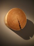 « La matière dans les nuages, le design du bois » exposition organisée au centre Wallonie-Bruxelles présentait Tree O’Clock du designer Raphaël Charles. Un tronc de mélèze qui, en étant un peu patient, révèle une horloge dont la fente tourne subtilement au rythme du temps. Une métaphore qui nous rappelle l’importance du lien avec les éléments naturels, car c’est la nature qui porte les marques le temps.