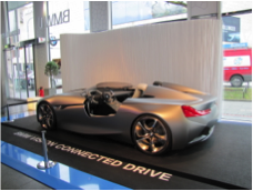 The companies slogan „Freude am Fahren“ -„driving pleasure“ is emblematic for the e-car efforts of the Munich based brand. It combines sustainability, internet connected services and the concept car does look like fun. www.bmwgroup.com