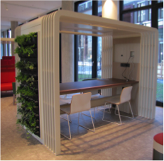 The Turkish manufacturer NURUS (est.1927 in Ankara). offers a modern and elegant solution for turning open spaces into little productive islands: Pit Stop & Lounge. It´s a white cube technically well equipped with an elegant design. Table height can be changed, big screens and green walls included. http://www.nurus.com