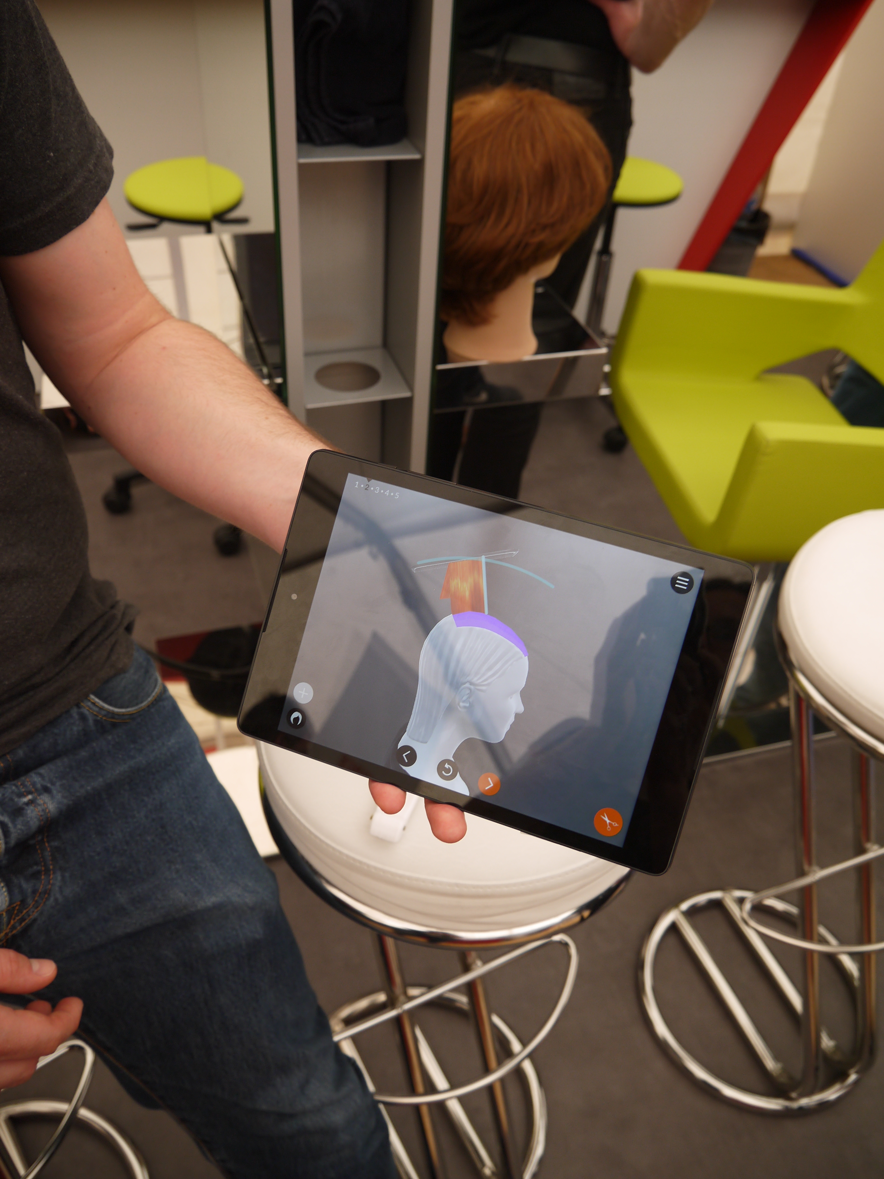 « Les cheveux, c’est ce qui est le plus complexe à rendre en 3D », c’est ce que Bruno Gaumetou de AGT Digital m’expliquait en 2013 sur la précédente édition de Futur en Seine. Il présentait alors un prototype d’essayage virtuel destiné aux salons de coiffure en se basant sur une technologie de rendu et de manipulation des cheveux en temps réel. Deux ans après, le projet a bien changé, confronté aux réalités en salon et enrichi des réactions des coiffeurs. Ceux-ci ne disposent absolument pas du temps nécessaire au scan des cheveux de la cliente pour procéder aux essayages virtuels. Tout doit aller si vite, et ce temps supplémentaire est difficilement valorisable. Les enquêtes terrains ont pourtant révélé un besoin bien plus important, celui de la formation. Le projet a donc pris une nouvelle direction.
