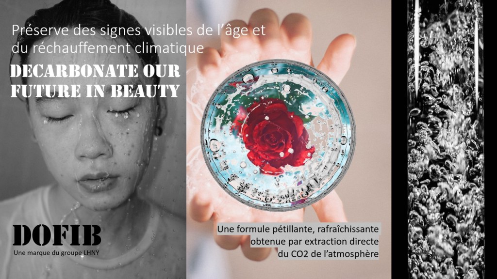 Fort de ce constat, pourquoi ne pas s’emparer de ce contexte pour apporter un remède spectaculaire à l’éco-anxiété des jeunes ? DecarbonateOurFutureInBeauty (DOFIB), une marque-manifeste qui s’engagerait pour la beauté des femmes et des hommes tout en leur permettant d’être acteur de leur futur, de consommer en dépolluant. Les formules cosmétiques sont carbonées à partir du CO2 extrait de l’environnement. Populaires en Corée, les formules pétillantes comme le Sparkling Mask by Shangpree sont idéales pour préserver la tonicité de la peau. Désormais ils pourront également dépolluer la planète. Ainsi en utilisant ces green bubbles en soins, les consommateurs améliorent leur bien-être d’aujourd’hui tout en contribuant à celui de demain. Qui est prêt à relever ce défi ?