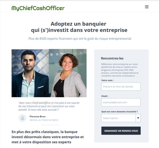 Et si vous adoptiez un banquier ? MyChiefCashOfficer met à disposition des dirigeants de TPE, PME, artisans ou commerçants indépendants des conseillers bancaires qui (s’)investissent dans leur entreprise.